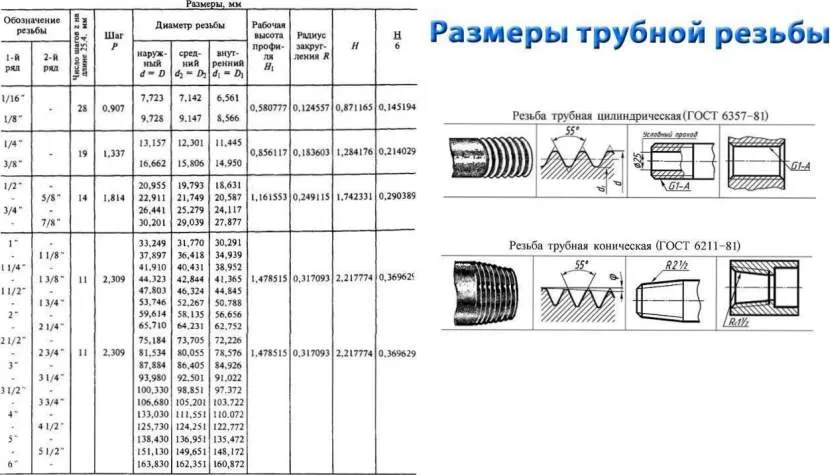 Характеристики резьбы на цилиндрических и конических трубахИсточник loftecomarket.ru