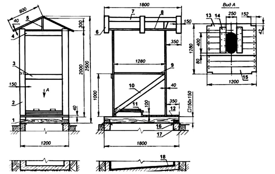 Схема и проект деревянного туалета для дачи