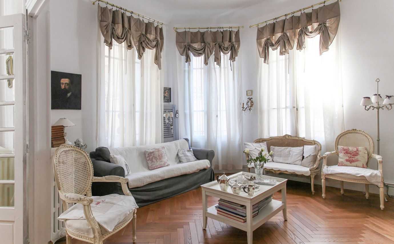 - Французские шторы. Этот вид штор представляет собой своеобразную воздушную вуаль, большое количество складок и воланов. При желании понять, как сшить шторы из тюля, можно внимательно рассмотреть технологию пошива именно французских штор, для производства которых используют именно легкую и полупрозрачную ткань типа тюля или органзы.