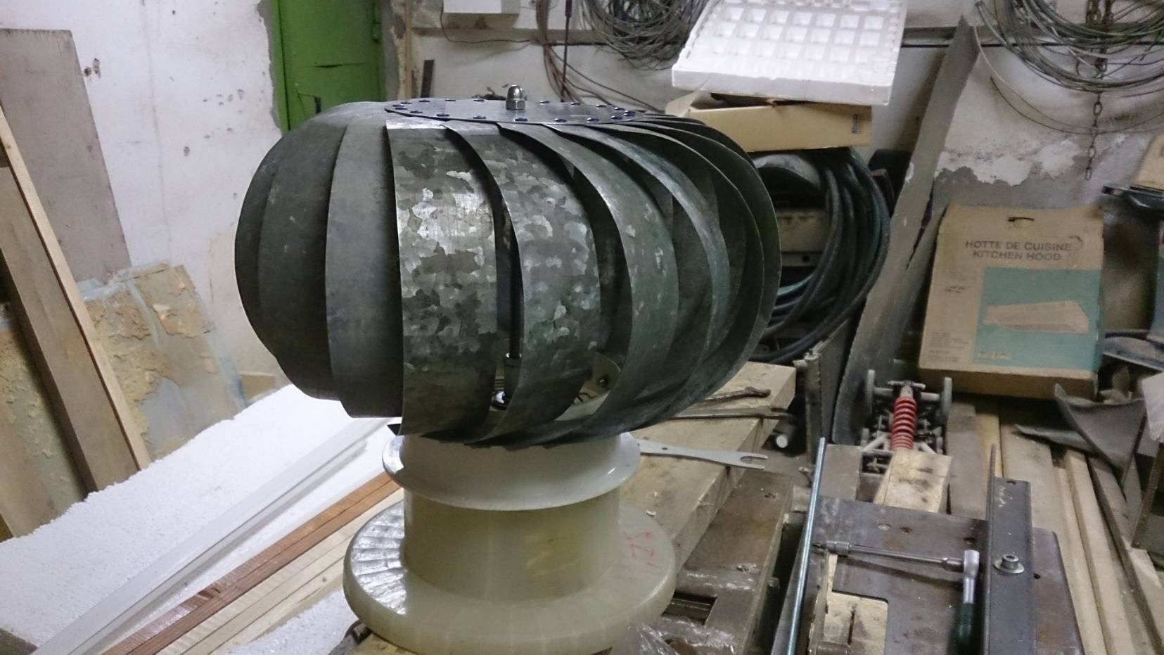 Сделать турбодефлектор можно и своими руками, но по сравнению с более простыми неподвижными моделями этот займёт больше времени, и потребуется вырезать множество одинаковых лепестков. Также важны точные расчёты и чертёж. Перед тем как приступить к нарезке металла, рекомендуется сделать выкройки из картона.