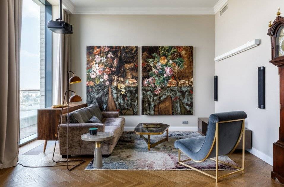 Главное, что картины в интерьере гостиной независимо от жанра бывают разных стилей, что только расширяет их применение. Например, если зал выполнен в стиле лофт, то ему больше подходит авангардная (разноцветная) живопись или черно-белая графика.