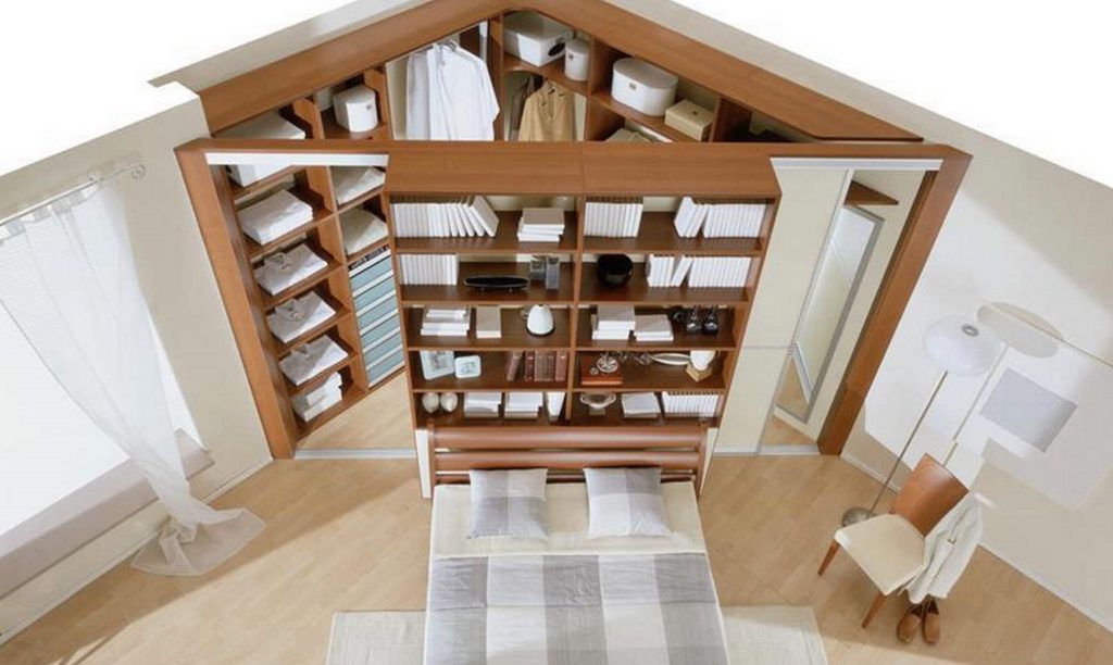 гардеробная может быть обустроена на чердаке или мансарде при наличии хорошего отопления и вентиляции