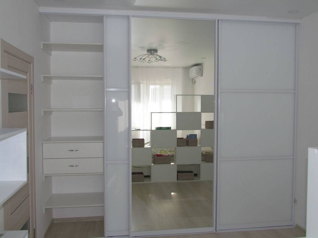 Двери часто выбирают либо распашные, либо купе – последний вариант более удобный и занимает минимум места. Хоть эта система и имеет множество преимуществ, причиной отказа от такой дизайнерской задумки является отсутствие достаточной свободной площади для примерки вещей.