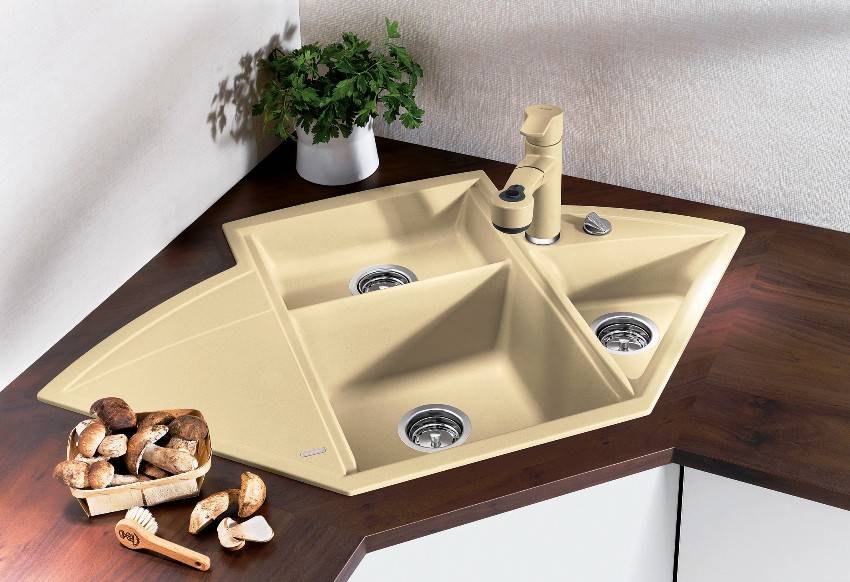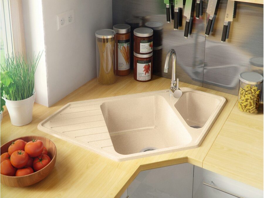 Круглые угловые раковины выпускают не так давно, но уже за такой небольшой промежуток времени они стали востребованными и популярными в угловых кухнях. Их преимущества: