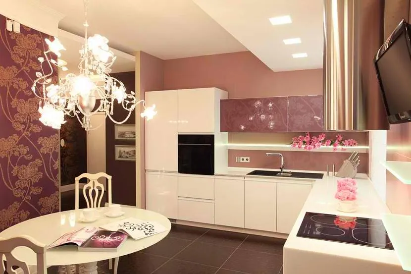 - дизайн помещения с угловой конструкцией обычно обеспечивает больше удобства хозяйкам, нет необходимости передвигаться от рабочей зоны к столу или к раковине.