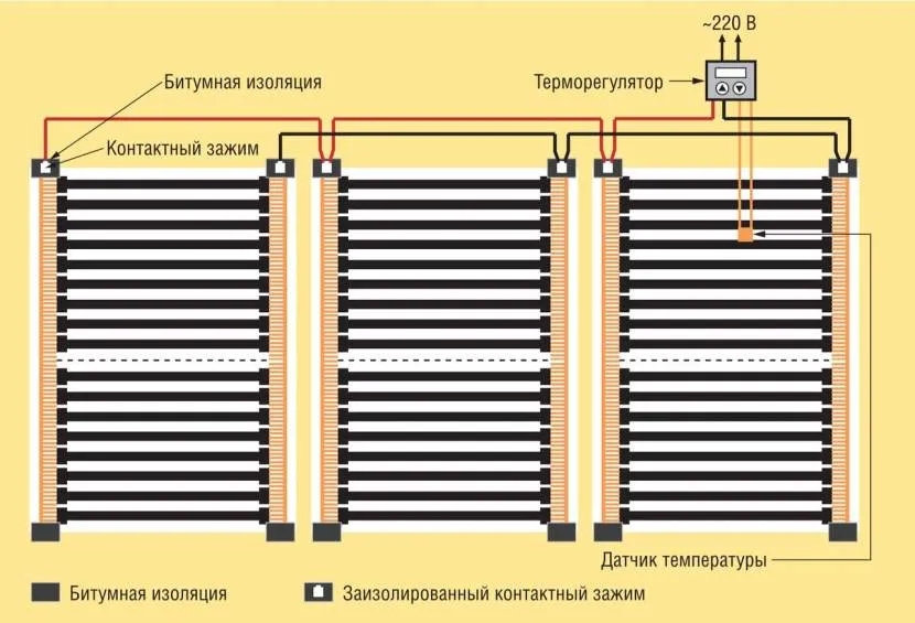 Схема подключения терморегулятора пленочного теплого полаПодключение терморегулятора для инфракрасного теплого пола