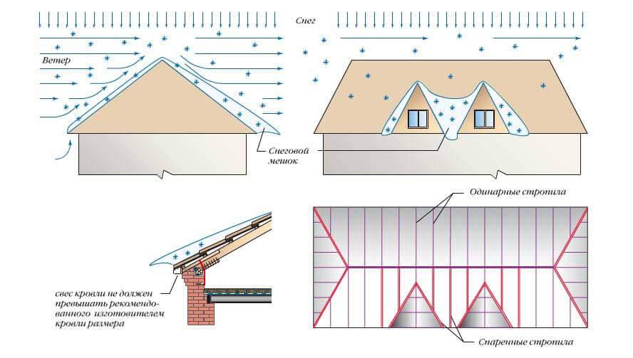 Расчет угла кровли в зависимости от снеговых и ветровых нагрузок