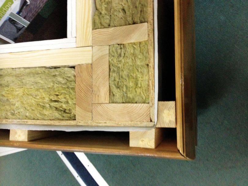 Угол — одно из проблемных мест в каркасном доме. Установка бруса без дополнительного утепляющего слоя приводит к образованию мостика холода. Дерево обладает более высокой теплопроводностью, чем минеральная вата, поэтому стена в углу помещения может промерзать.