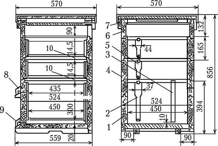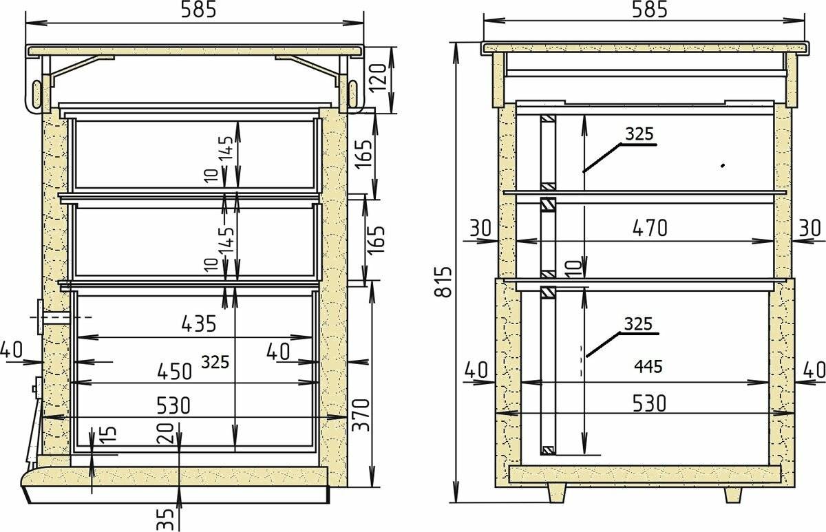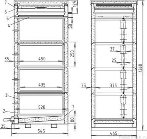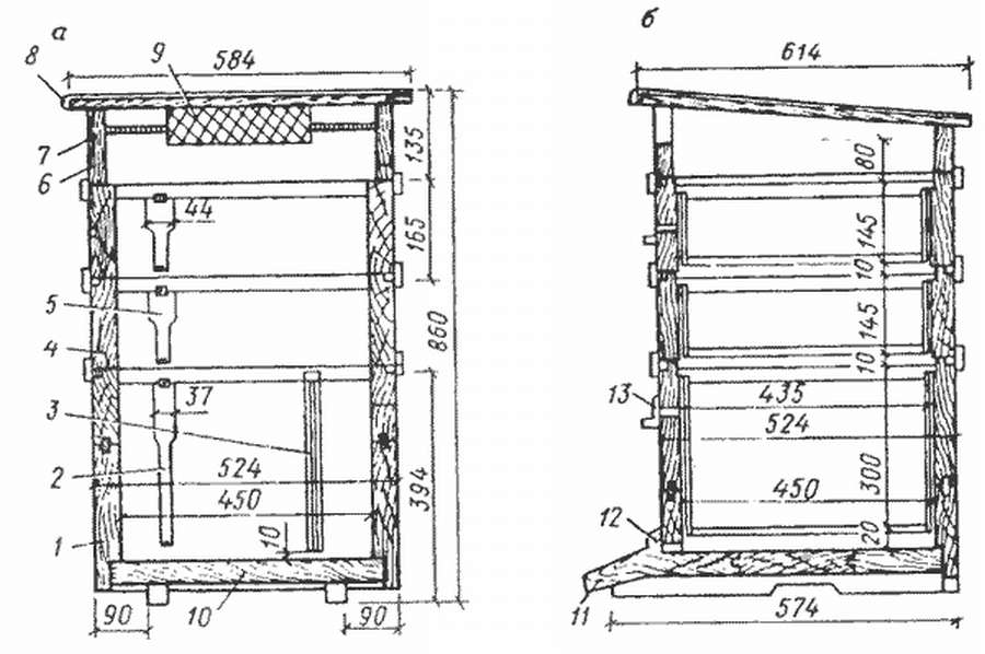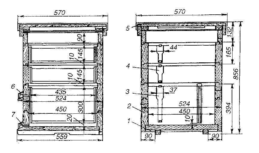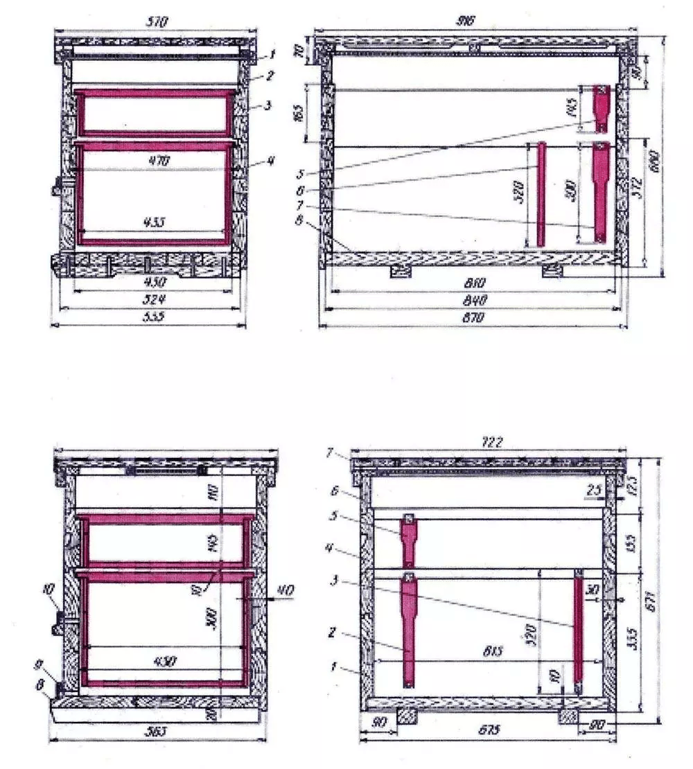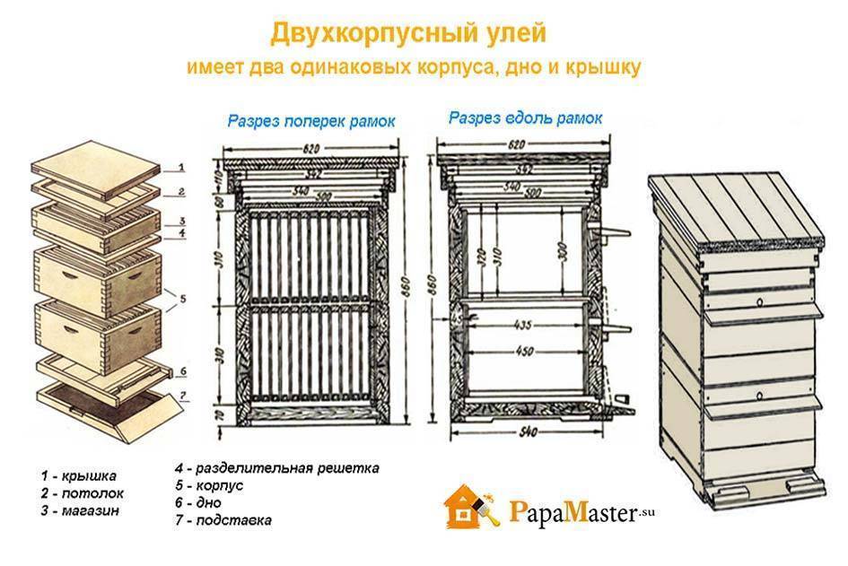 Корпус имеет стенки, размеры которых зависят от типа конструкции. В каждом шкафу находится разное количество шкафов. Внутри устанавливаются специальные пазы. Это помогает при установке рамок. На стенах размещаются пчелиные люки.