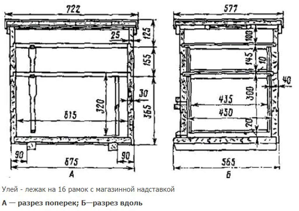 Просторный, простой улей, благоприятно влияющий на развитие потомства и солидный урожай. Тесные гнезда угнетают семьи, снижают их работоспособность. Поэтому многие пчеловоды предпочитают обустраивать пасеки именно ульями лежаками.