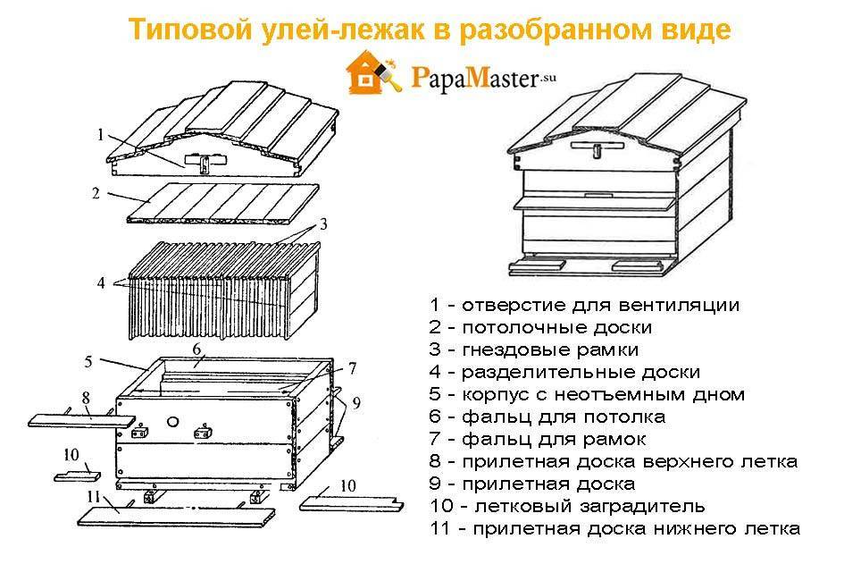 Если вы решили изготовить улей-лежак на 16 рамок своими руками, для начала следует узнать, из каких элементов он состоит: