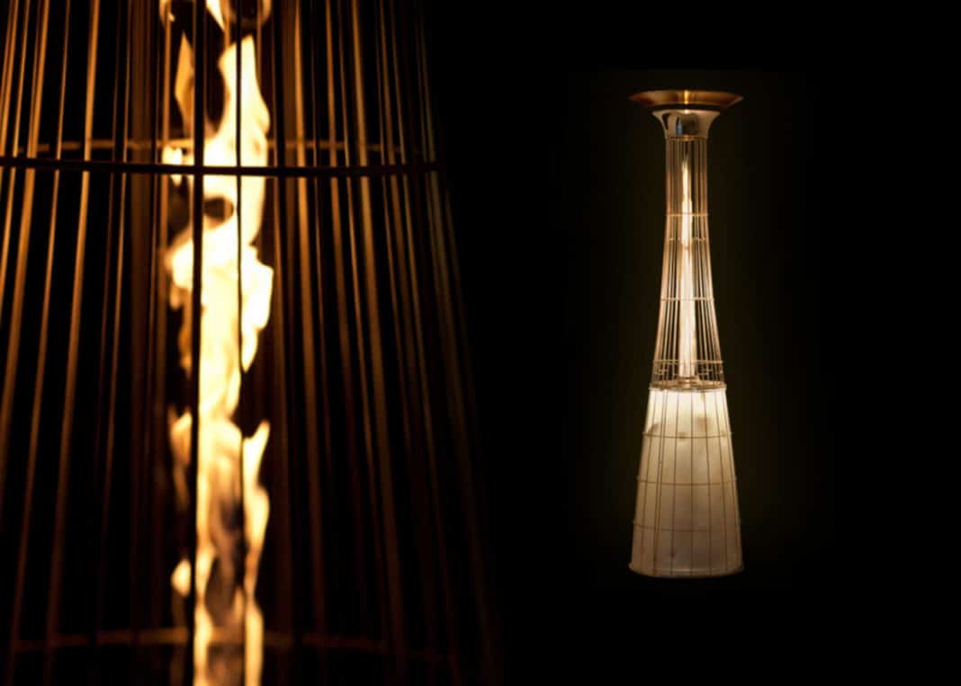 Газовое пламя способно давать более мягкий длинноволновый спектр инфракрасного излучения, что приятнее для глаз, но медленнее нагревает окружающие предметы. Сами горелки имеют открытую или грибовидную конструкцию. Открытые пропановые нагреватели представляют собой прозрачную стильную колбу в виде пирамиды, а закрытые сконструированы по типу газовых грибов, где роль излучателя играет стальная труба, разогреваемая пламенем до красна. Пропан может подаваться в стационарные обогреватели по магистральному скрытому газопроводу – это самый экономичный вид обогрева патио-зоны. Однако, подключение к коммуникациям лишает прибор мобильности. Для придания газовой горелке полной автономности, ее оборудуют баллоном на 30 литров. Полной заправки хватает на 10 часов работы.
