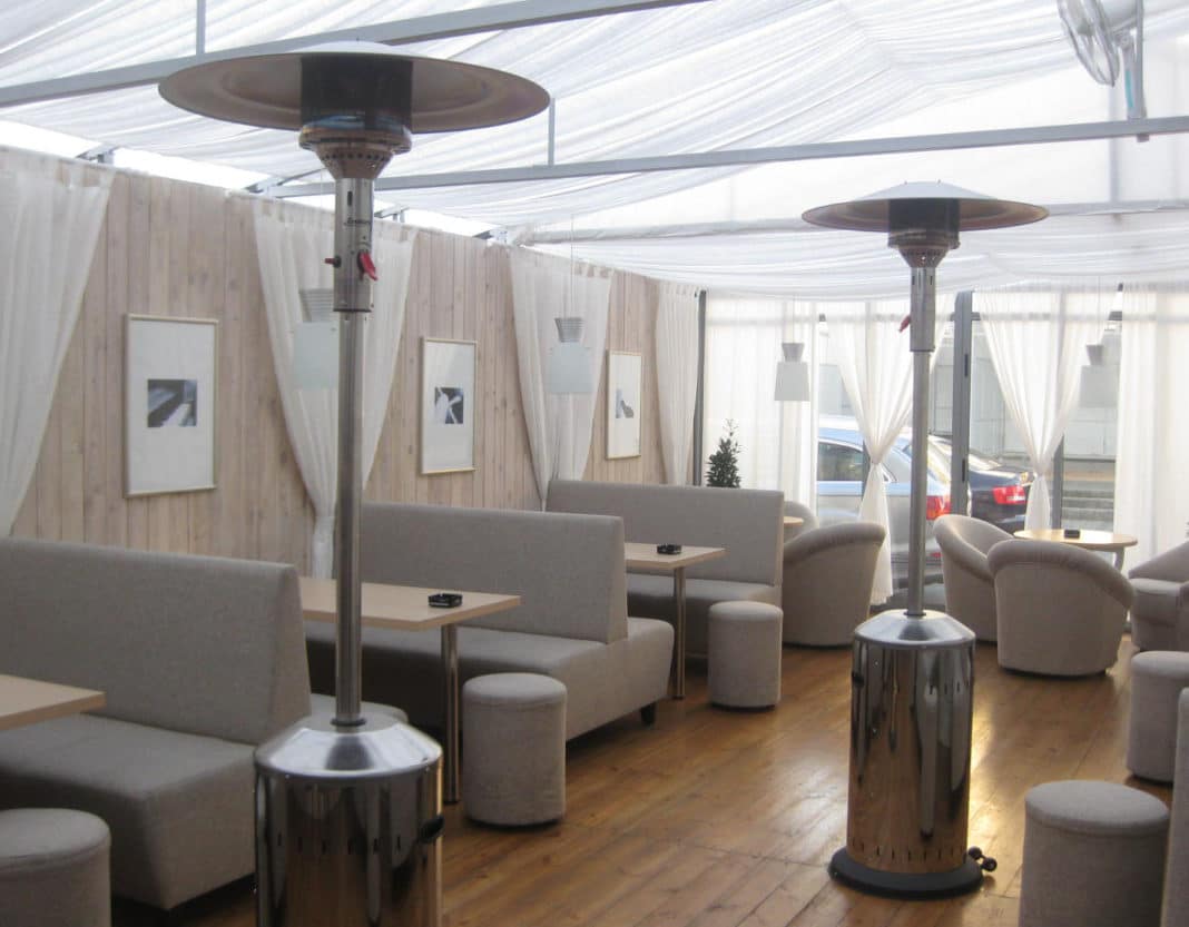 Дизайн обогревателя – не обращать на него внимания не получится, так как именно от этого момента в большей степени зависит возможность установки. Здесь следует понять то что, одна форма обогревателя излучает тепло сверху вниз, а другая может делать это под наклоном или вообще в сторону. Как минимум, от этого зависит площадь обогрева и то, сколько людей может поместиться в обогреваемой зоне.