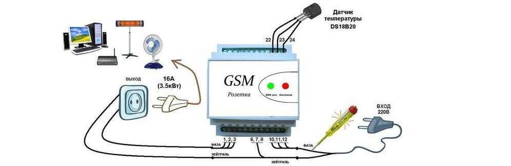 Схема подключения GSM-розетки