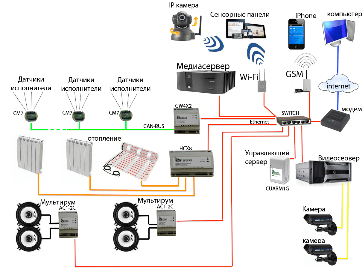 Нужно учесть, что некоторые системы требуют наличия компьютера, с помощью которого создается сайт дома, отображается схема системы, устанавливается требуемое ПО.