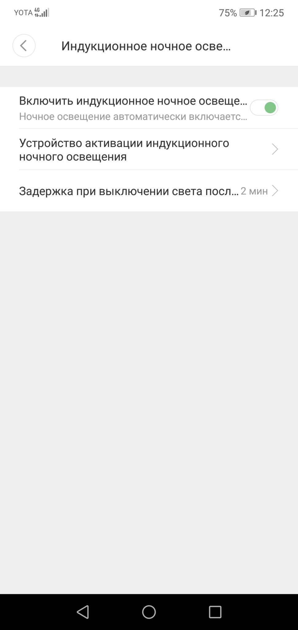 Индукционное ночное освещение (эта функция работает с датчиком движения): В устройстве активации индукционного освещения настраиваем время включения и выключения — период, когда наш датчик будет срабатывать и вауля, наш шлюз aqara автоматически загорается цветом, который вы задали по умолчанию.