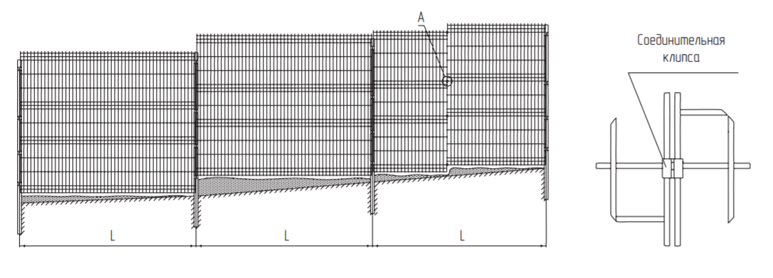 На рисунке видно, по какому принципу устанавливается ограждение