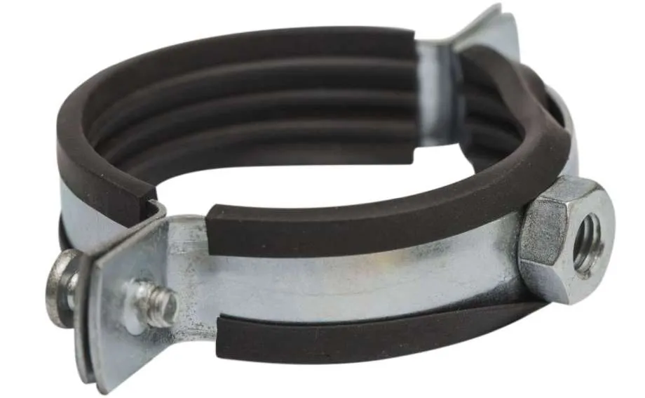 В сантехническом отделе можно найти металлические кольца на резьбовой штанге или без нее. Они удобны тем, что зажимная часть разбирается на 2 части – одна фиксируется к стене, вторая прикручивается после вставки трубы.