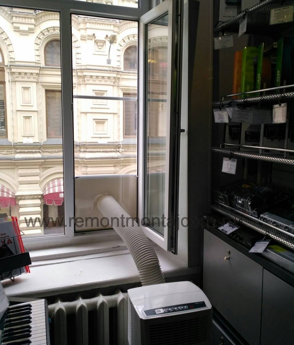 Чтобы правильно установить мобильный кондиционер, нужна определенная сноровка, хотя работы здесь не так много, как при монтаже оконного или настенного кондиционера. Сразу необходимо продумать, какой вид закрепления отводного шланга применять: постоянный с врезкой в оконный блок или временный, чтобы для вывода использовать слегка приоткрытую форточку. Если вы намерены перемещать кондиционер по квартире, чтобы везде создать прохладную атмосферу, то вам подойдет временный вывод.