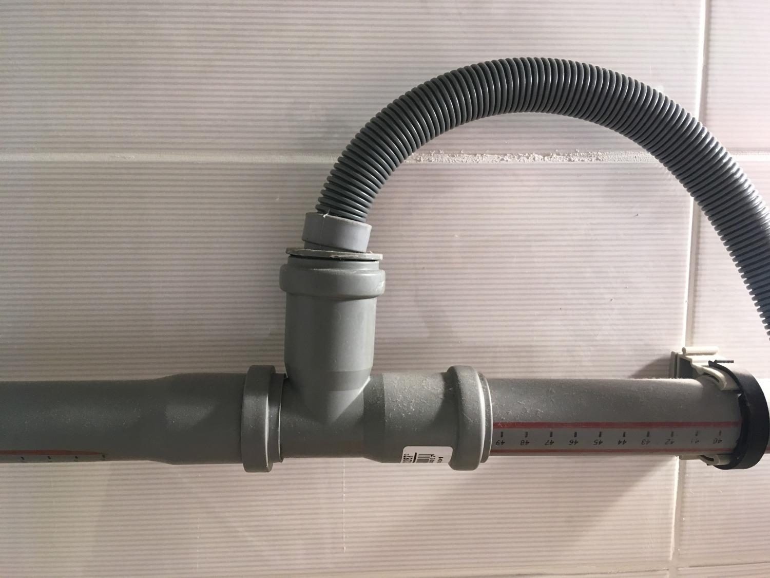 Если отвод не оснащён обратным клапаном – при S образном соединении можно добиться этого эффекта благодаря воздушному зазору. Самая нижняя часть шланга должна быть расположена на расстоянии 50 см от пола или выше. Если канализационная труба находится ниже 50 см, при подключении системы слива без сифона может создаться «сифонный эффект» и постоянно возникать канализационный запах.