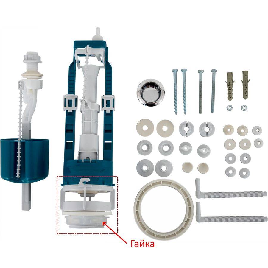 среди элементов унитаза отыскиваются патрубки и манжеты к ним, гайки с шайбами для шпилек;