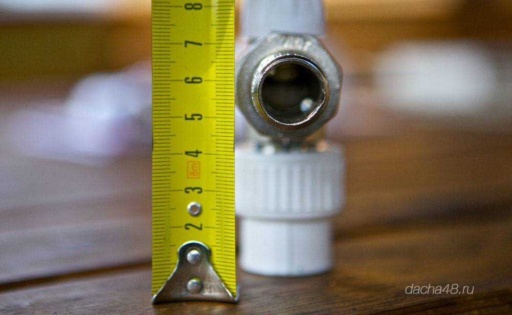 Скручиваем с переходной муфтой и измеряем расстояние до центра. Получилось 58 мм, это ровно то расстояние, которое указано в документации к радиатору. Взгляните выше PRADO Classic Тип 11.