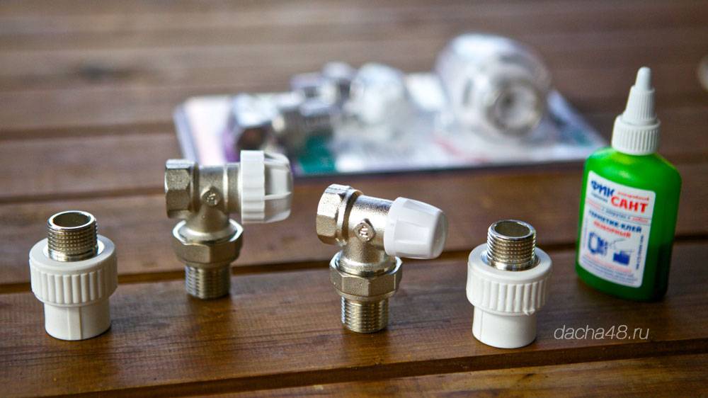 - В зависимости от схемы подключения нужны переходники, уголки, муфты.