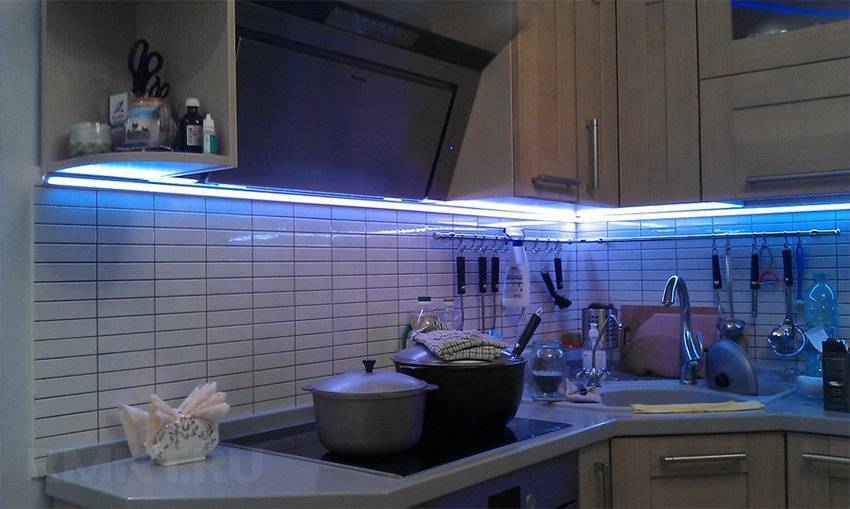Преимущества весьма серьезны, led-лента достойна того, чтобы если не занять главную роль в освещении кухни, то хотя бы существенно его дополнить.