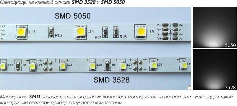 Чаще всего монтаж светодиодной подсветки выполняется из SMD-светодиодов. Они классифицируются по ряду признаков:
