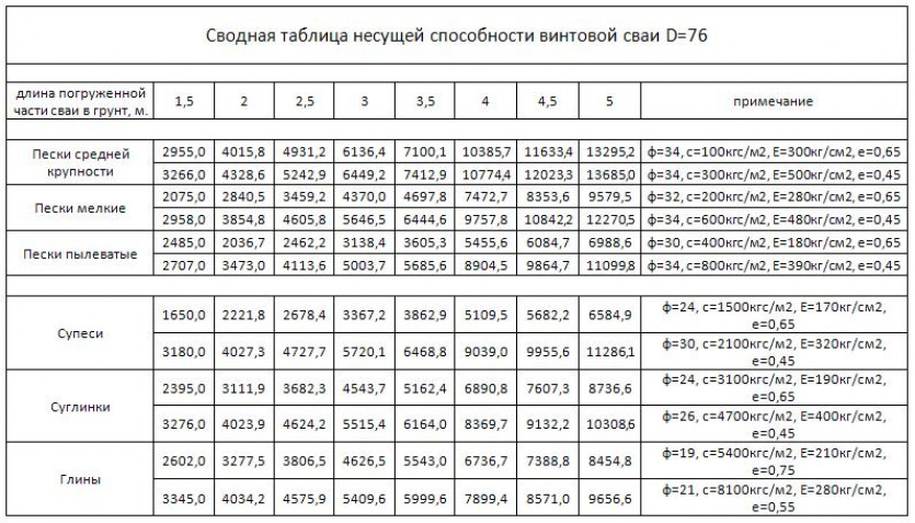 Теперь выполним расчёт его несущей способности. При квадратной площади в 150 кв. м и удельном весе в 350 кг/м., он будет весить 52500 кг, то есть 52,5 тонны. Учитывая количество свай, расчёт несущей способности выполним приблизительный, так как, учитывая отзывы, сваи выдерживают около 5 тонн нагрузки на каждую. Тогда 20х5=100 тонн – это максимальная нагрузка веса нашего строения на фундамент.