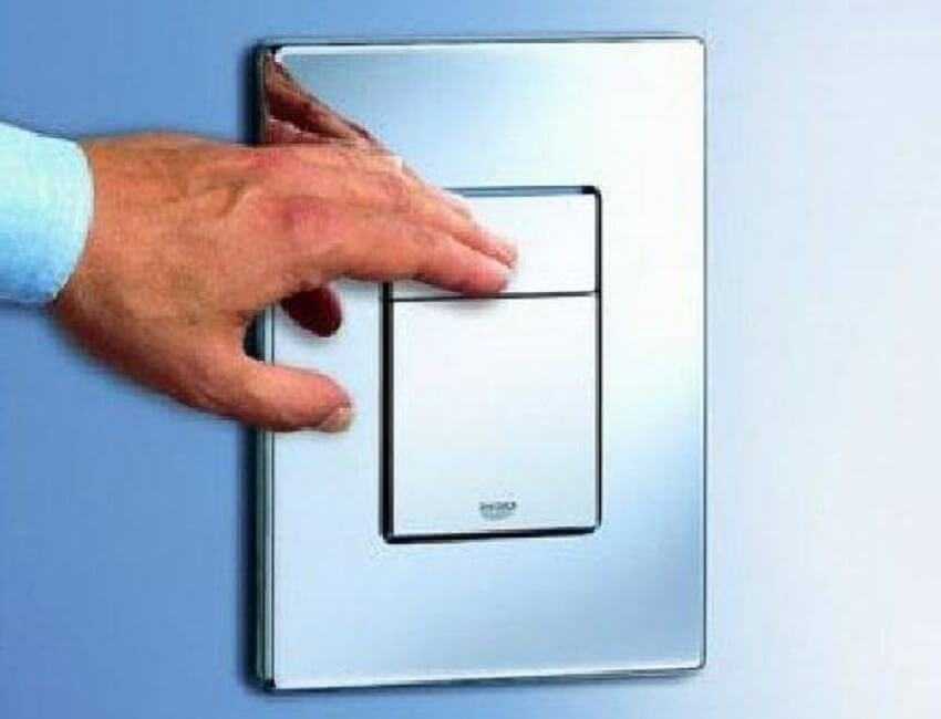 Далее устанавливаем кнопку сливного бачка. При её монтаже следует внимательно ознакомится с инструкцией — конструкция кнопок разных производителей может достаточно сильно отличаться.