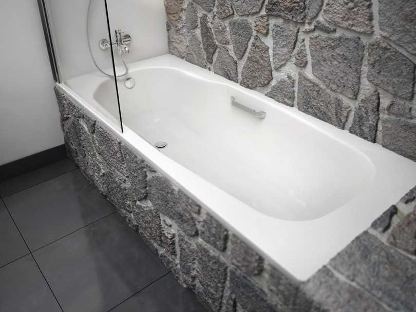 Эффективным при установке чугунных и акриловых ванн считается комбинированный способ, при котором дно ванны поддерживает кирпичная кладка и ножки также используются в качестве опоры