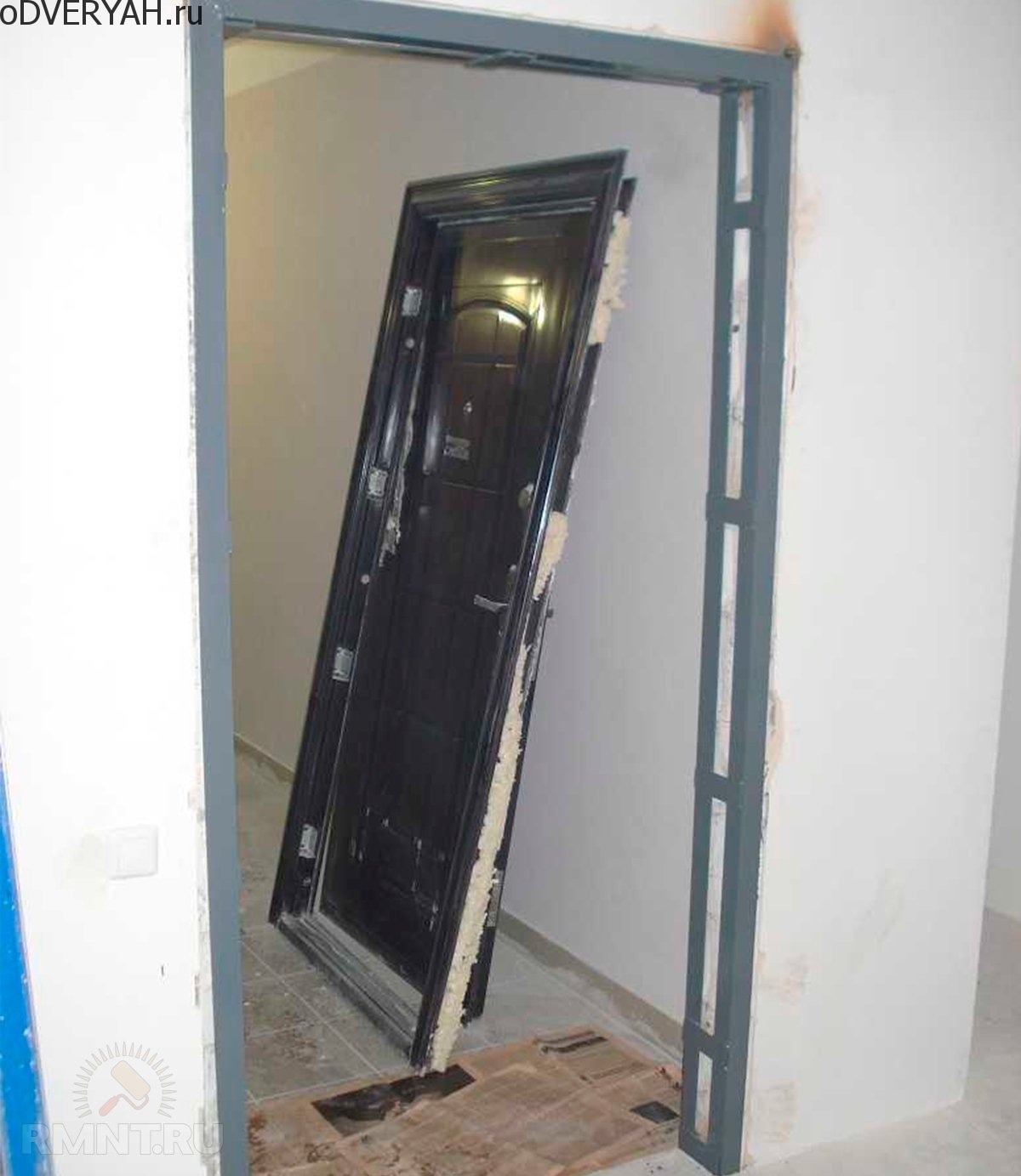 Практически все стандартные модификации предполагают именно такой способ крепежа. Алгоритм монтажа входной двери в частном доме или квартире в данном случае предполагает: