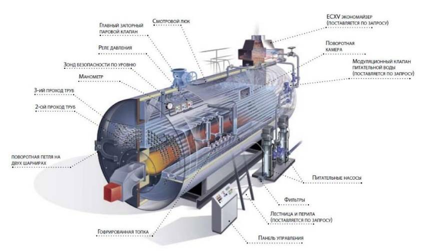 Внутренние устройства котельного оборудования можно разделить на две группы: