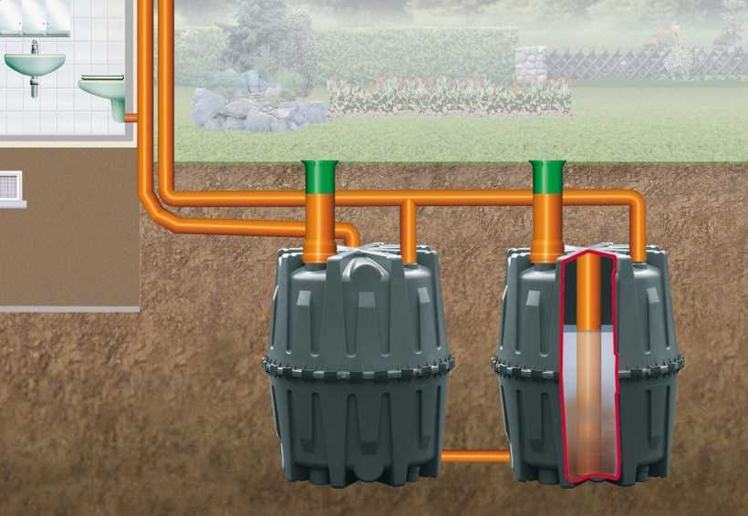 Двухкамерная разновидность позволяет поэтапно очищать содержимое сточной воды, где на первом этапе на дно оседают крупные элементы, затем, жидкость переливается в другой резервуар. Здесь происходит очищение при помощи бактерий, а также на дно оседают более мелкие частицы. Для того чтобы неприятный запах не поступал в загородный дом, септики рекомендуют дополнительно вентилировать.