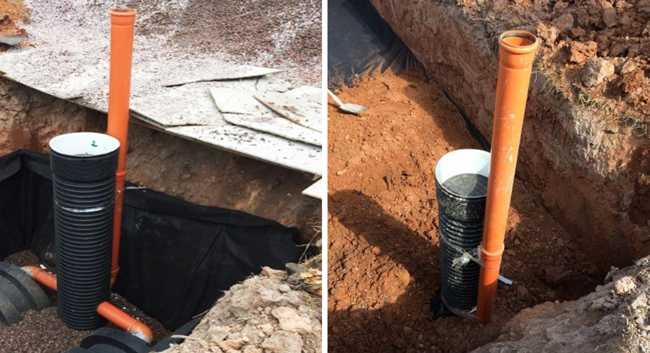 Важно! Трубопровод должен иметь уклон (5-10 мм на 1 метр), иначе жидкость будет застаиваться. Система способна нормально функционировать около 7 лет. После этого срока трубы надо выкапывать и очищать, а фильтрующий слой из щебня и песка полностью менять