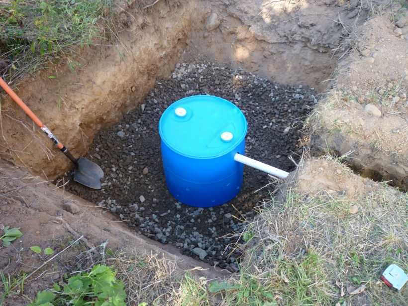 Впрочем, малый вес является и недостатком – во время весенних паводков пластиковый септик может всплыть на поверхность земли. Чтобы компенсировать этот фактор, под септиком можно расположить тяжелую плиту, оснащенную петлями. Еще один вариант – придавить самодельный септик для дачи тяжелым предметом и закрепить его над устройством.