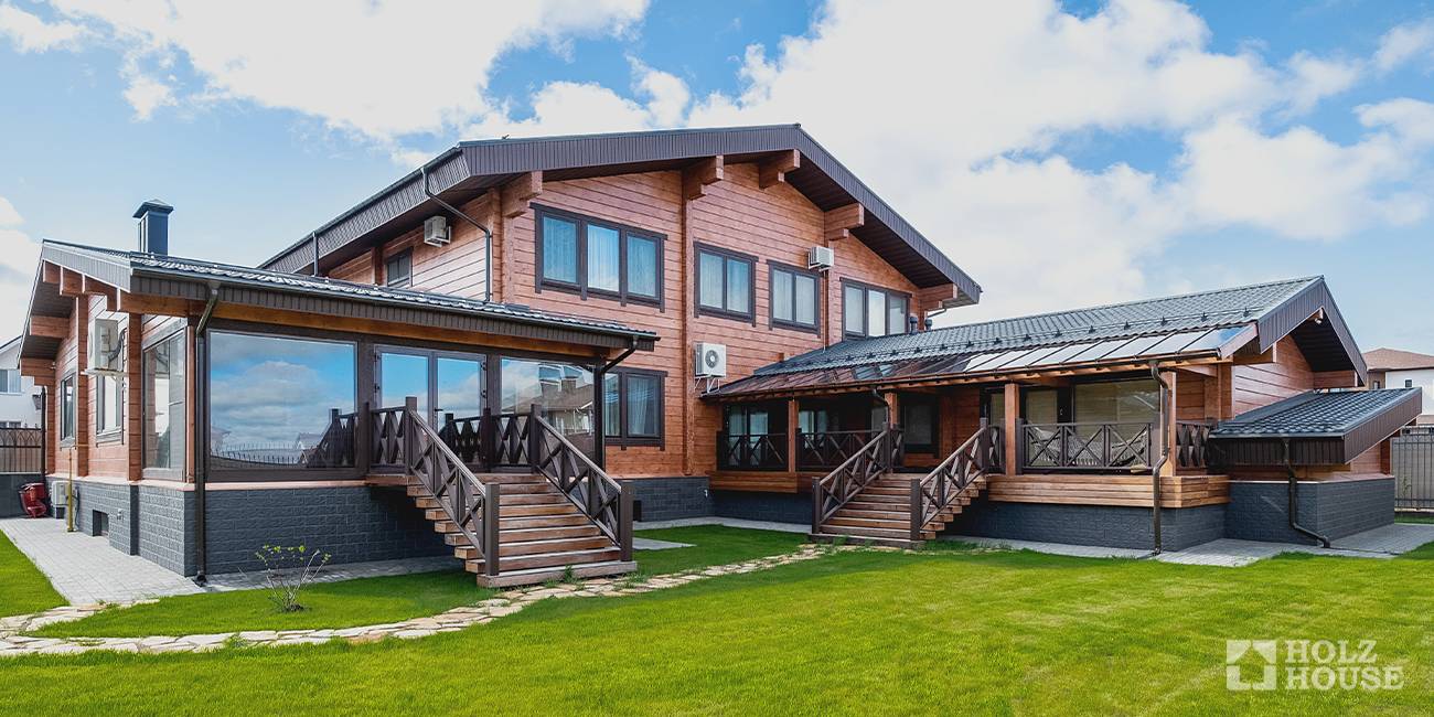 Иногда для закрытия цоколя используют дерево. Деревянную обрешетку монтируют по контуру основания, оставляя нижние планки на небольшой высоте от грунта. Натуральная древесина – экологичный и фактурный материал, но легко деформируется и выходит из строя под воздействием влаги, солнечных лучей и перепадов температур, а также склонен к возгоранию. Чтобы деревянный цоколь прослужил дольше, детали обрабатывают защитными средствами – антипиренами и антисептиками.