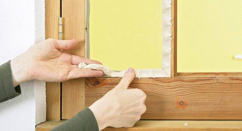 Для герметизации подойдет специальная оконная замазка или пластилин. Эти материалы одинаково пластичны и хорошо прилипают к дереву и стеклу. Наносят их с наружной стороны окна на стык между стеклом и рамой. Перед использованием небольшой кусок материала нужно размять и равномерным слоем, слегка вдавливая, замазать щель. Ключевой недостаток метода – разрушение замазки при замерзании и плавление пластилина на солнце.