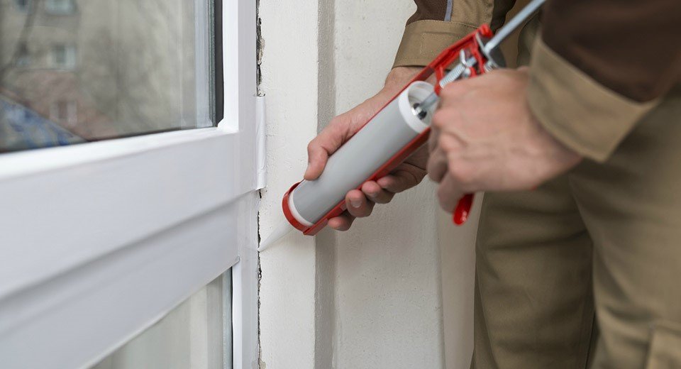 Заделывание стыка между стеклом и рамой с помощью герметика
