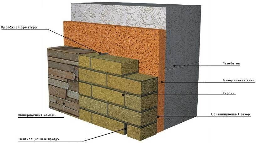 Общая схема утепления газобетонной стены