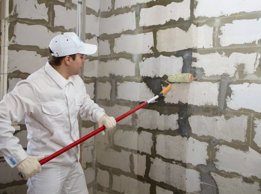 Работы по утеплению выполняются после длительной просушки строения. Стена перед проведением работ очищается щеткой и строительным пылесосом, после чего грунтуется. Грунтовать лучше пульверизатором за один проход