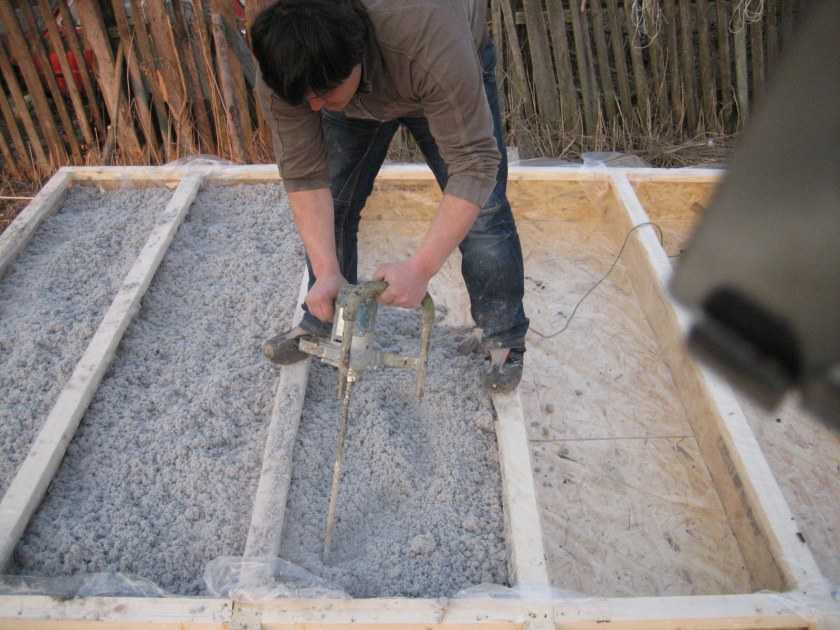 Если же было принято решено взять в качестве утеплителя войлок или минеральную вату, то бетон лучше располагать пластами, а между ними поместить теплую прослойку.