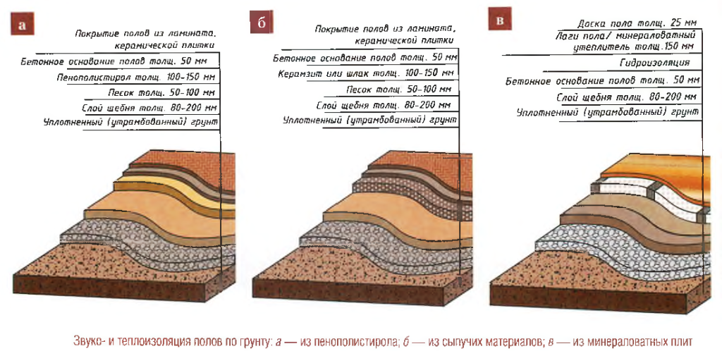 Если под полом вместо бетонного основания находится грунт, технология утепления выполняется несколько иначе: