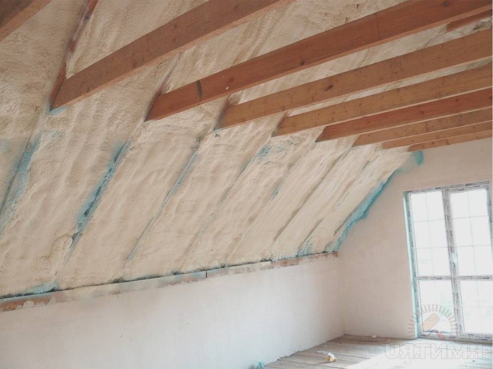Вспененный полиуретан по своей структуре имеет некоторые сходства с монтажной пеной. Но в процессе работы с ним потребуется наличие специального оборудования. Из-за низкой прочности теплоизолятора поверх слоя требуется внешняя отделка.