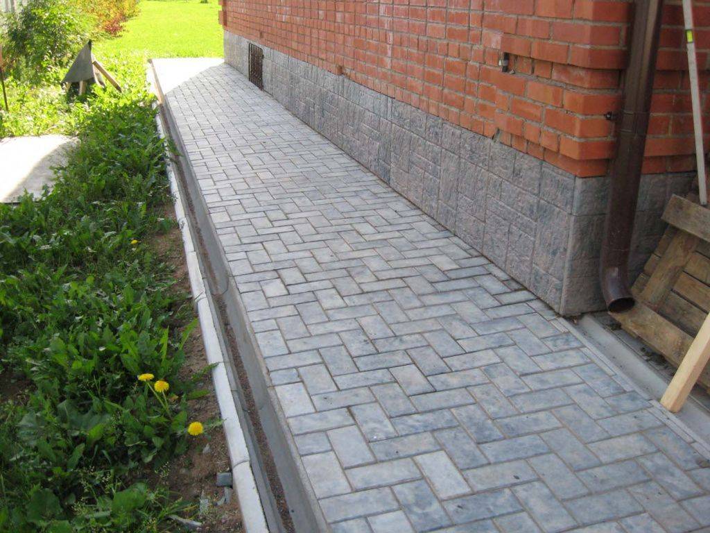 - Тротуарная плитка будет выполнять своеобразную декоративную функцию и максимально скрывать отмостку от посторонних глаз.