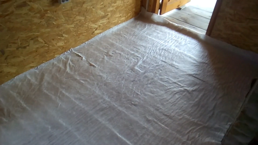 Можно пол закрыть листами фанеры. При работе используют перфоратор и дюбеля. Шляпка самореза утапливается в лист. Затем образовавшиеся выемки необходимо зашпатлевать. Допускается использовать листы OSB. Однако, ДСП использовать категорически запрещено. В таком материале содержится, фенол, который является сильнейшим канцерогеном.