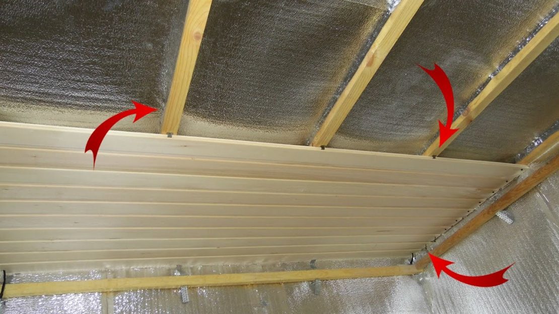 - На отражающее покрытие крепится деревянная обрешетка (толщина 10-20 мм), на которую монтируется внутренняя отделка (например вагонка).
