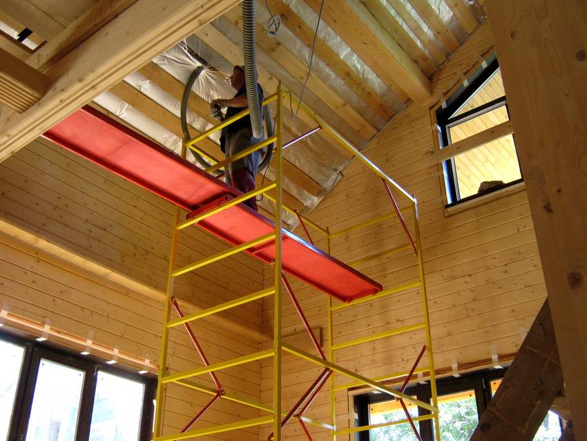 Сооружение теплоизоляции изнутри под стропилами