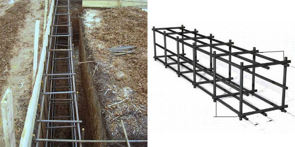 Для высокого основания может быть предусмотрено несколько рядов, при этом расстояние между ними не должно быть более 40 см. Диаметр стержней выбирается исходя из ширины бетонной ленты и длины стены.